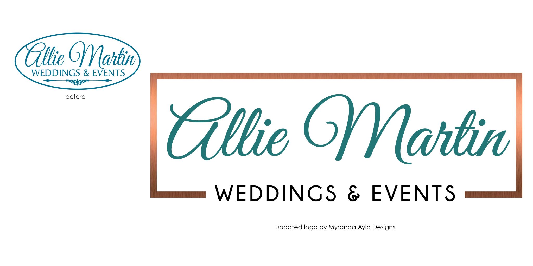 Think of this as a new haircut or new outfit for your logo. Small tweaks can give your logo a fresh, new look. This can even be a slight change in font or color. Like the Apple logo above, updates don’t mean that your logo won’t stand the test of time, it just means you are keeping up with the times. Allie Martin Weddings wanted a new look for their 10th year in business!