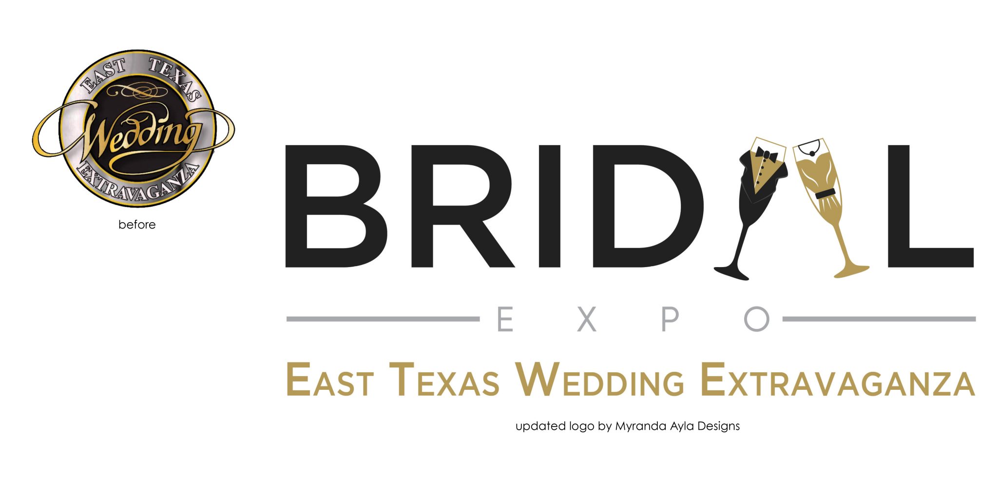 Besides updating this logo with the times we needed a logo that would be “print friendly”. 90% of East Texas Wedding Extravaganza‘s marketing is through flyers, posters, signage, social media and ad print. We needed a logo shape that would layout efficiently with printed marketing material. Take a look at the two ad comparisons. We were able to gain more readability with the new logo and save space to add more information and visual interest to the ad.